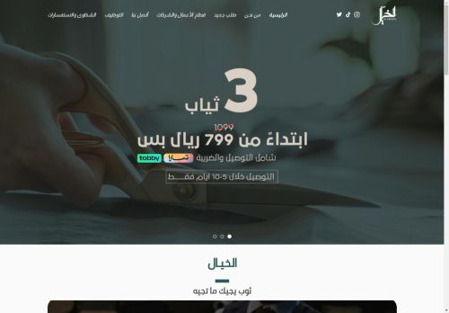 وصف الموقع: الخيال هي شركة سعودية رائدة في مجال تفصيل الثياب متخصصة في تقديم خدمة التفصيل المتنقل في اي مكان يناسب عميلنا، كما نتميز بتنوع كبير في خامات الاقمشة بأحدث تكنولوجيا مكائن القص والخياطة.