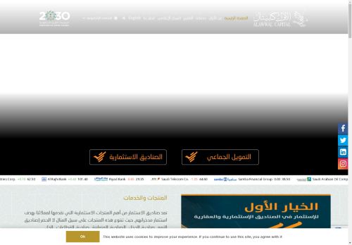 وصف الموقع: لأول كابيتال شركة مساهمة سعودية تمارس العمل المالي والاستثماري داخل المملكة العربية السعودية متخصصة في إدارة الثروات والأصول وتقديم الخدمات الاستثمارية وترتيب التمويل و استشارات مالية وخدمات تطوير الأعمال وتستشعر ” أهمية تنمية الثروات في المجتمعات الاسلامية والحفاظ على المكتسبات وحفظها للأجيال القادمة