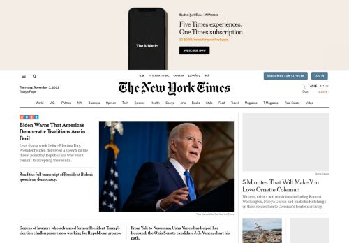 كلمات مفتاحية: من أشهر الصحف الأمريكية التي تقدم أخبار حصرية على مدار الساعة، وتتميز بالمهنيين المحترفين الذين يعملون لديها. من أفضل المواقع الاخبارية العالمية في الصحف الأمريكية، يُعتمد عليها دائمًا كإشارة رئيسية وموثوقة للأحداث الحصرية، وتعتبر ذات تأثير قوي، وتحتل مواقع الأخبار المراتب الأولى من حيث القراءة والتصفح عبر الإنترنت، وتنقل الأخبار العالمية والدولية أولًا بأول. تتصدر شبكة مواقع نيويورك تايمز باللغة الإنجليزية، و مترجمة للإسبانية والصينية فقط ويشاهده الملايين شهريا حول العالم.